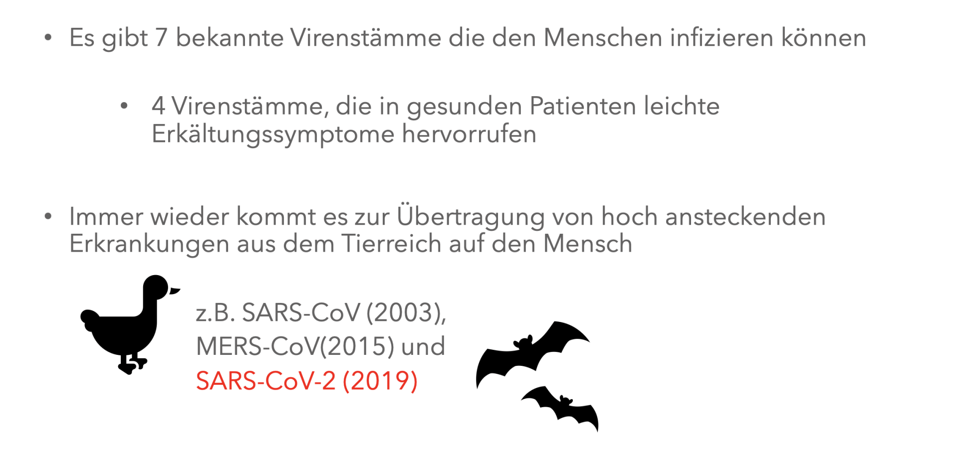 Every human virus is of animal origin,very often by bats or birds.